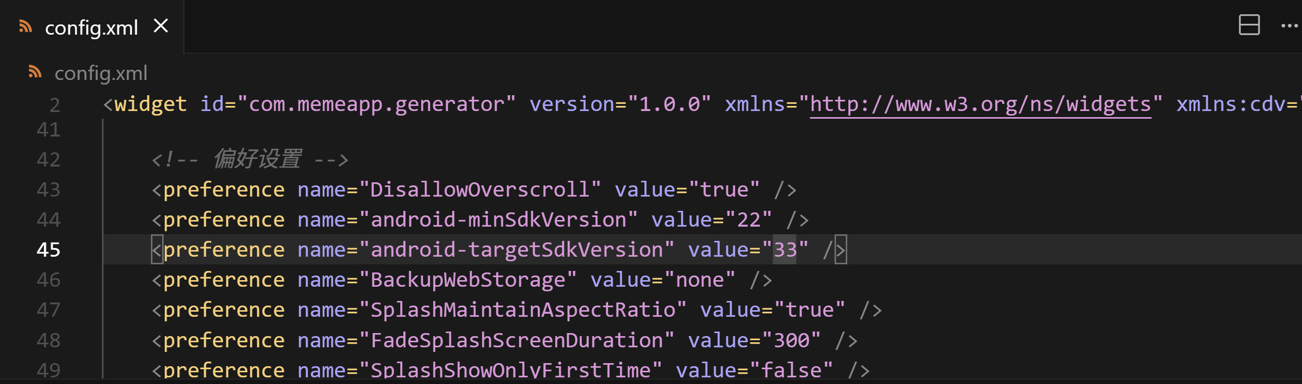 如果不一致,可能会影响 APP 的运行。可以修改 config.xml 的 targetSdkVersion 来修改版本号: