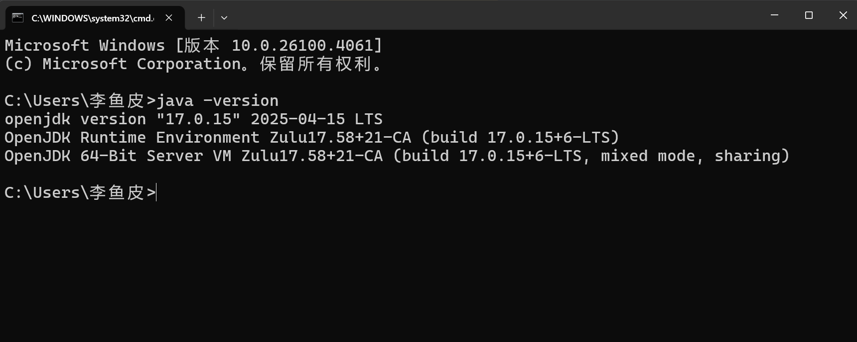安装完成后,打开终端执行 java -version 命令查看版本号,看到下列输出表示成功: