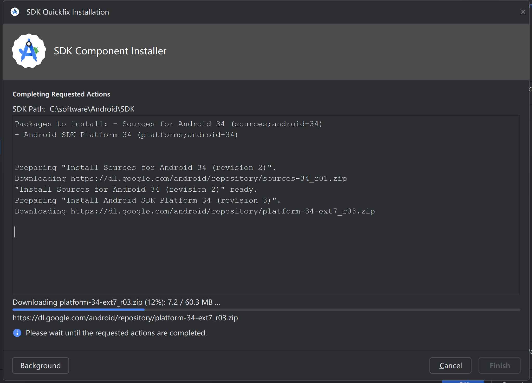 经过了漫长的等待,Android SDK 终于安装完成,然后需要配置 Android 的环境变量 ANDROID_HOME: