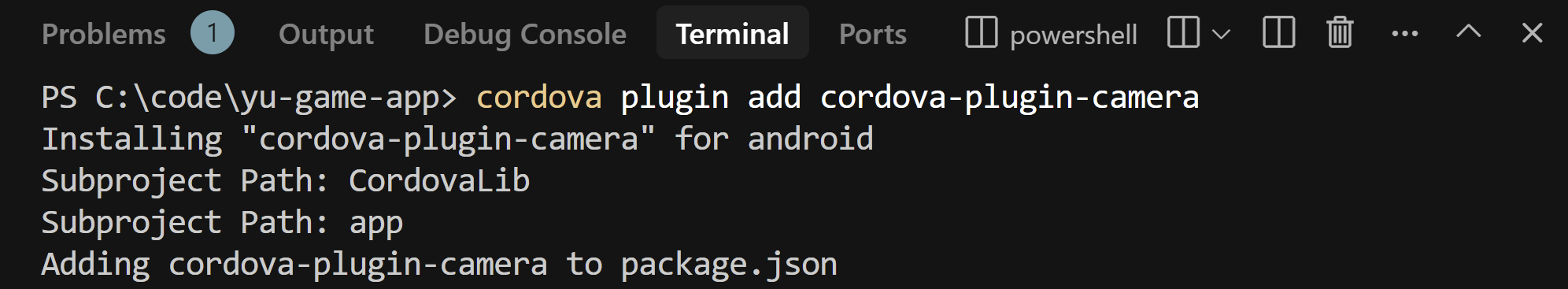 由于我的项目需要调用摄像头,所以要添加对应的插件,执行下列命令: