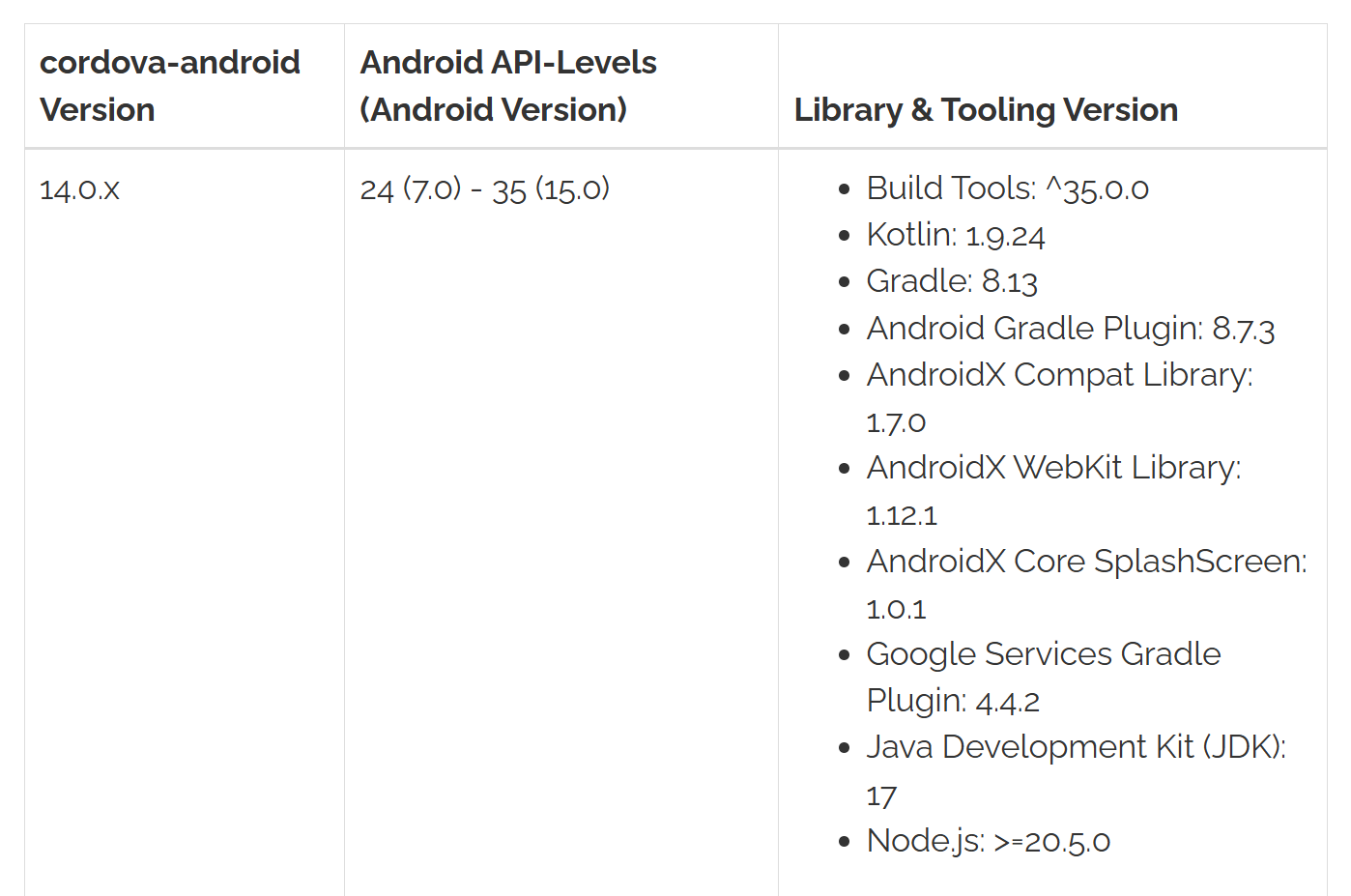 首先,我们要根据 Cordova 的版本来确定所需环境和工具的版本,由于我们安装的 Cordova 是最新版本的,因此直接阅读