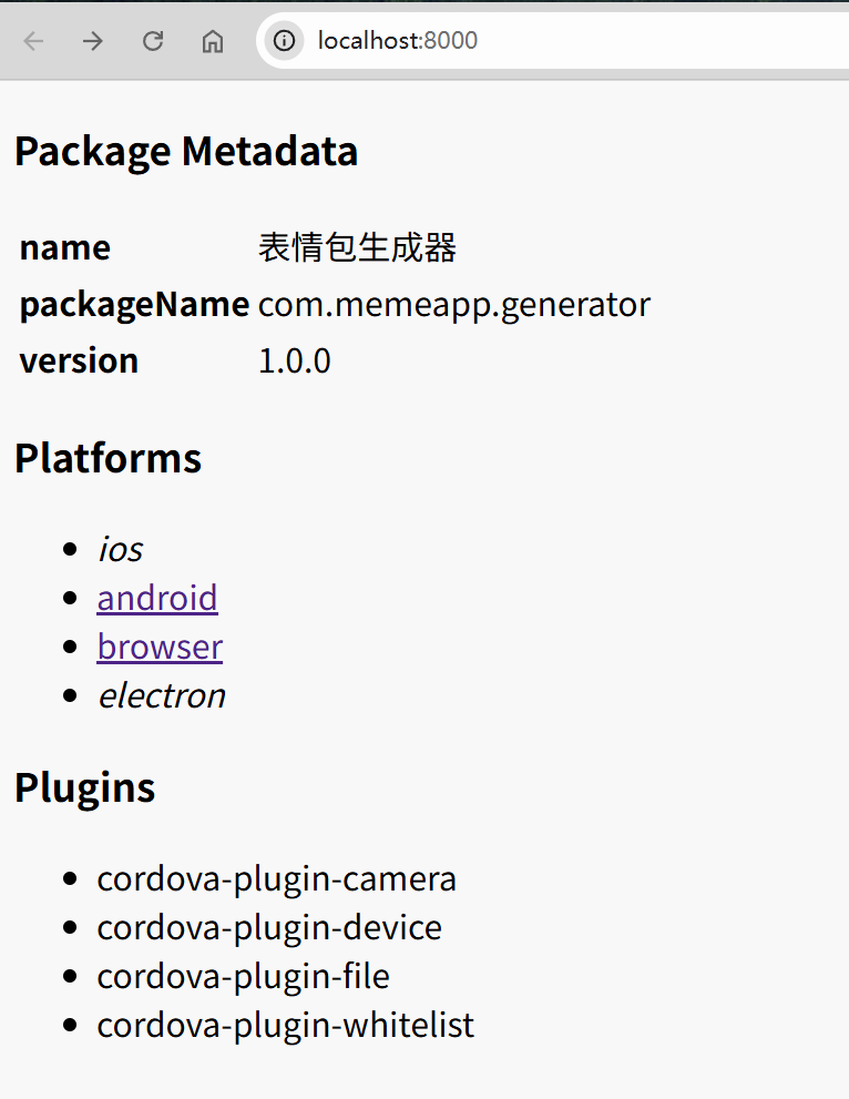 然后就能够查看到网站的运行效果了。需要注意的是,因为 Cordova Browser 平台的特殊性,通过这个命令运行的网页效果可能和直接双击、或者启动本地服务器运行有区别。