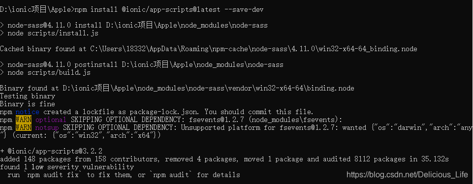 ionic新建项目失败:node-sass/node scripts