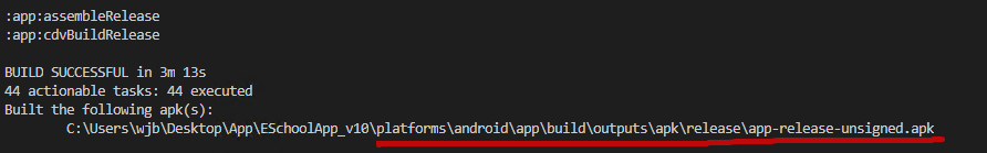 - 执行打包命令,生成正式版Apk文件