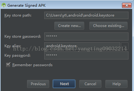 选择刚才的那个keystore,或者jks,然后输入名字、密码,key alias别名需要和生成keystore时设置的别名一致(my_app.keystore)。点Finish就可以生成了relese版本的apk了。