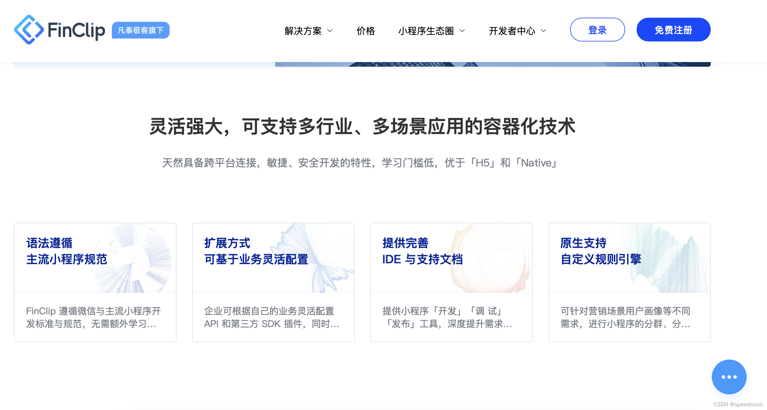 Finclip小程序开放平台,为企业提供“小程序运行能力”,它作为小程序运行的环境,为小程序提供安全沙箱、代码解析和渲染等服务。 为了让更多 APP 轻松拥有“小程序运行能力”,凡泰极客将“小程序运行时”实现成一个可私有化部署的 iOS 和 Android 版本的 SDK,可以被第三方集成。也就是说,任何 APP 通过嵌入FinClip小程序SDK即可瞬间获得运行小程序的能力。
