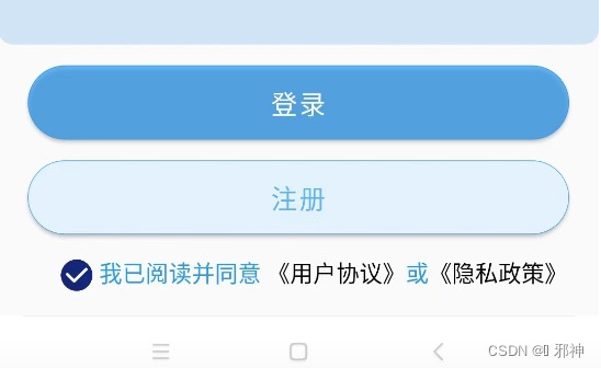 Padding( child: MaterialButton( minWidth: MediaQuery.of(context).size.width * 0.9, padding: EdgeInsets.only(top: 34.h, bottom: 34.h), onPressed: () {}, color: const Color(0xFFE3F2FD), shape: RoundedRectangleBorder( //边框颜色 side: BorderSide( color: Colors.blue, width: 1.w, ), //边框圆角 borderRadius: BorderRadius.all( Radius.circular(68.w), ), ), child: Text( "注册", style: TextStyle( color: Colors.blue.withOpacity(0.7), fontSize: 50.sp), ), ), padding: EdgeInsets.only(top: 40.h), )用户协议、隐私政策