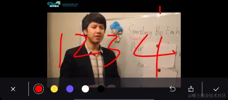 颜色选择功能可选择和标识当前涂鸦颜色,和指示当前涂鸦颜色的选中状态(以白色外圈标识)。切换颜色后下一次涂鸦即会使用新的颜色。