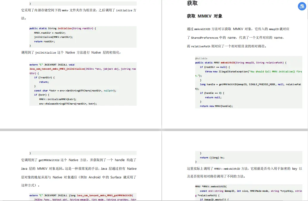 由于文档内容过多,为了避免影响到大家的阅读体验,在此只以截图展示部分内容,**508页详细完整版的《Android 开发相关源码精编解析》**文档领取方式:点赞+关注,然后私信关键词 **【源码】**即可获得免费领取途径!