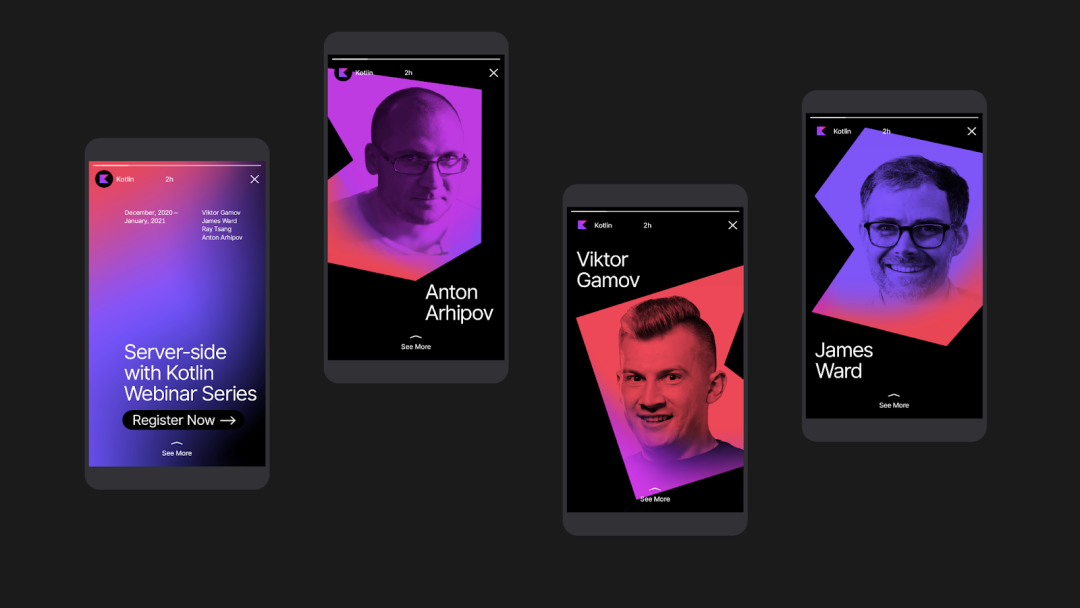 品牌 Logo 是一种多功能工具,可用于各种场景。Kotlin 团队选择了 3D 形状作为 Kotlin 视觉语言的基础,因为它们能够以多种方式使用。这些 3D 外形可以用作形状、照片蒙版、图标等等。