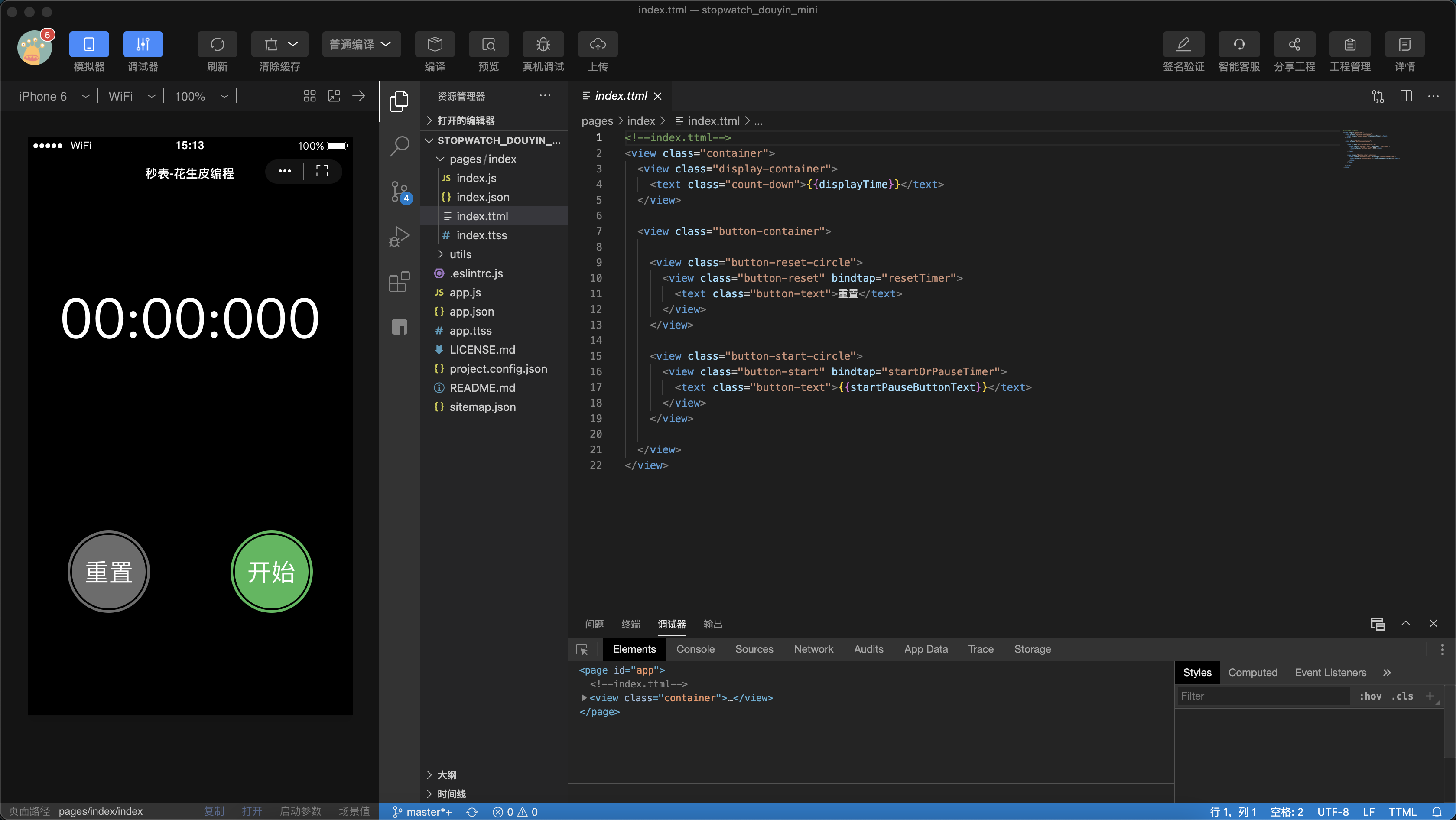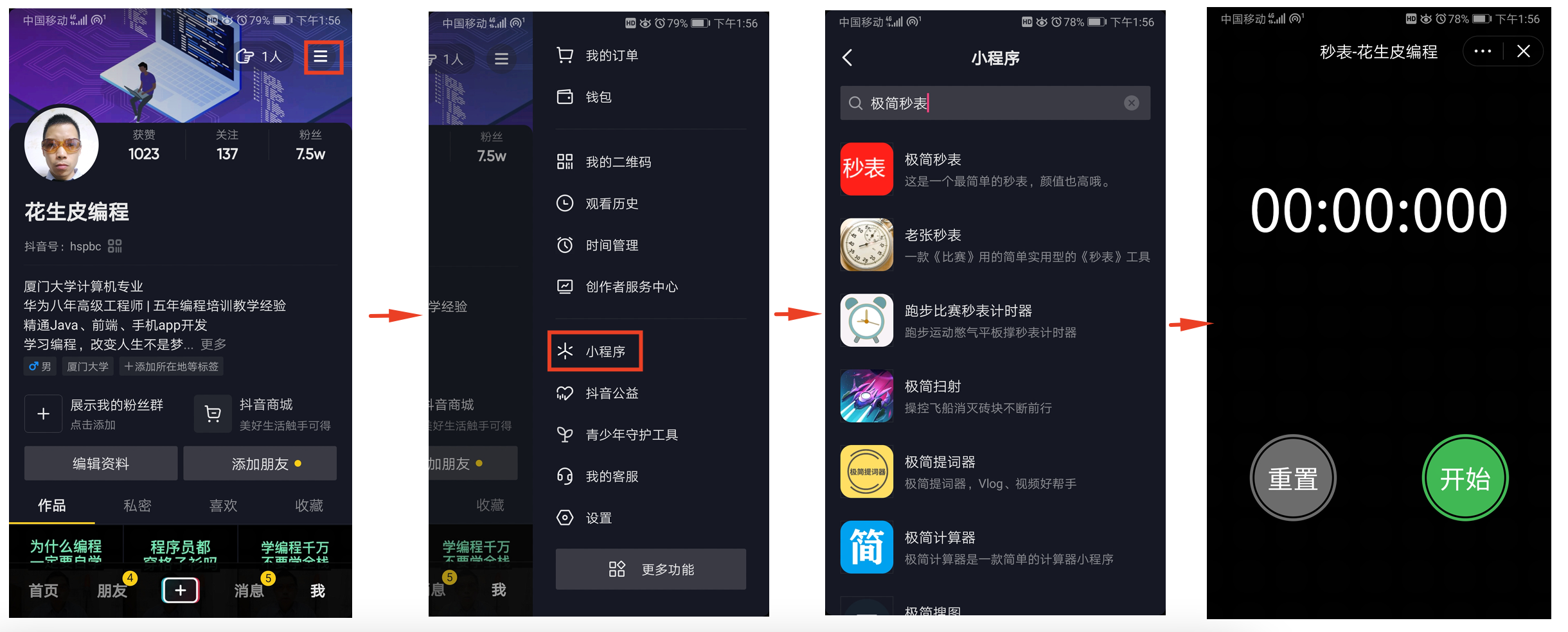 用十种编程语言开发秒表应用-第六篇-抖音小程序