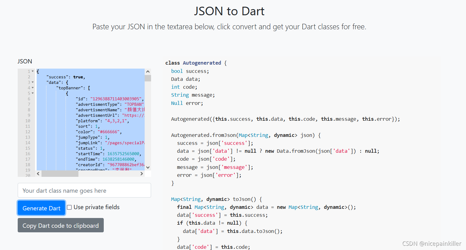 提升效率:在线转换JSON TO Dart?