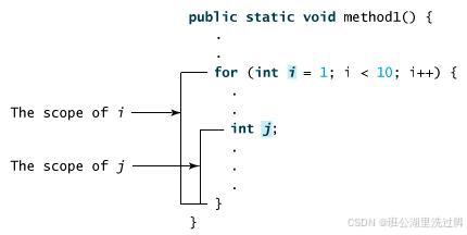 但循环体内声明的变量其适用范围是从它声明到循环体结束。它包含如下所示的变量声明: