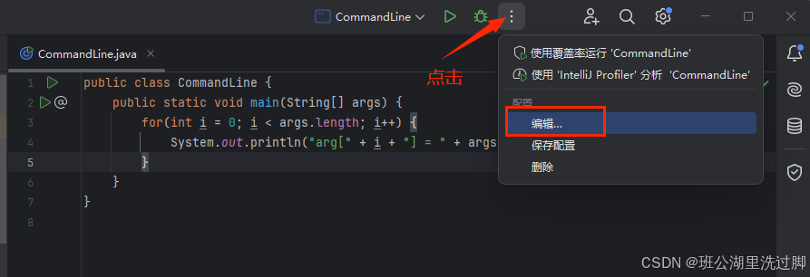 main方法的头部是不变的,如例子所示,带修饰符public和static,返回void类型值,方法名字是main,此外带个一个String[]类型参数。String[]表明参数是字符串数组。
