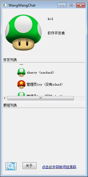 本篇主要讲述客户端设计过程并对客户端代码做简要解析介绍旨在与大家交流、学习同时请大家赐教。基本实现了注册、登录、私聊、群聊、等基础功能。近期服务端会一直开启,注册成功后系统会自动添加博主为好友、同时群组列表包含一个共有群包含所有用户。大家可以下载测试版体验交流下。主要内容基本信息编码设计MainWidget主界面类LandWidget登录类Register注册类...
