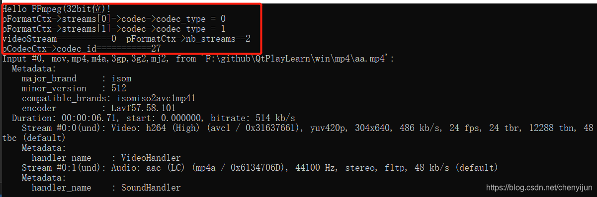 av_dump_format(pFormatCtx, 0, file_path, 0); //输出视频信息