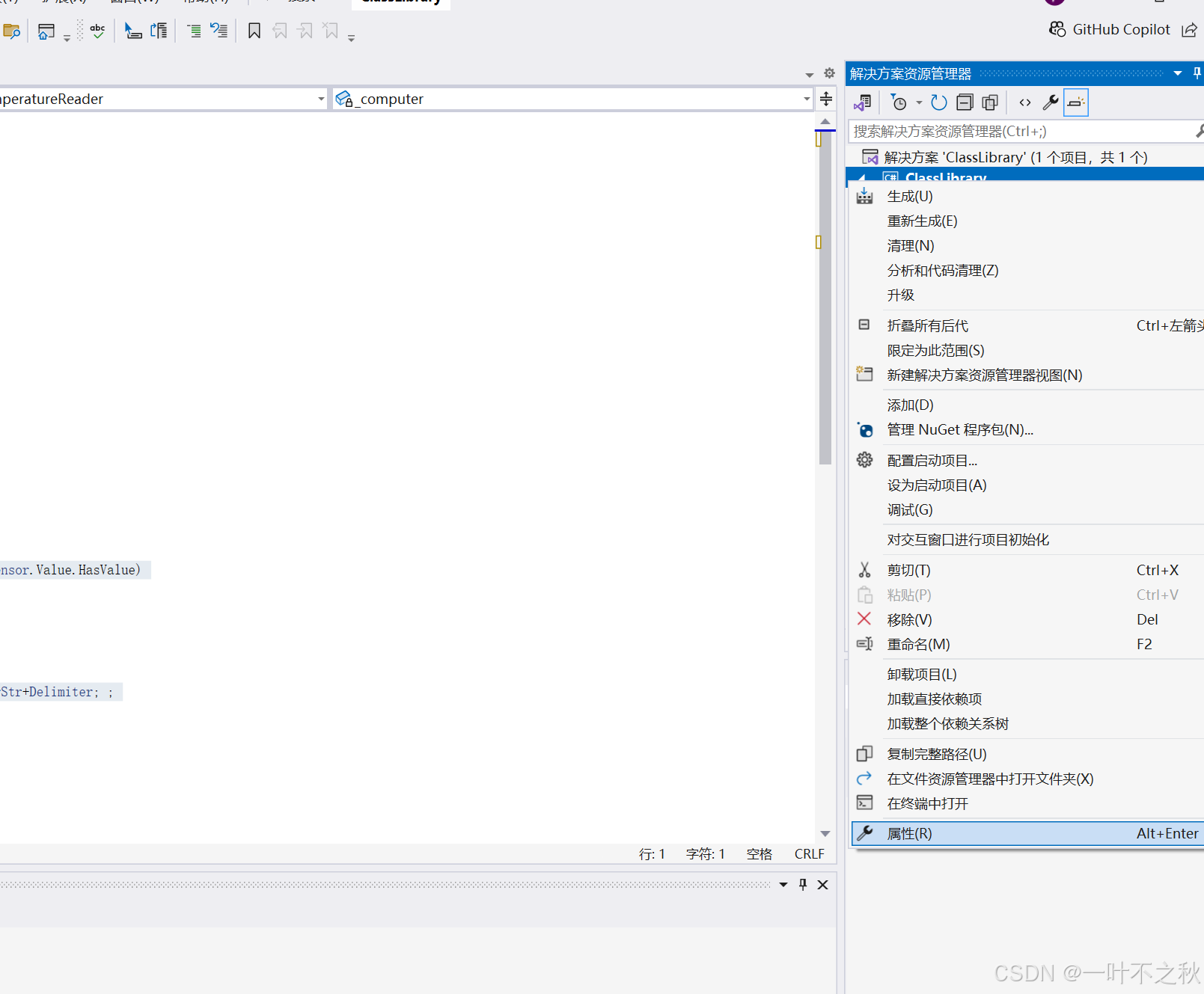 我把这库命名为ClassLibray,单击右键工程文件,管理NuGet程序包。