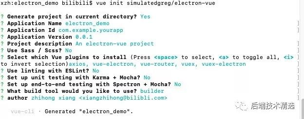 然后根据下面的提示一步步选中选项即可创建项目,如下所示。