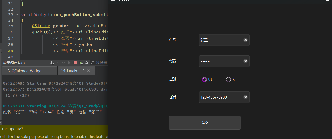 三个输入框的 objectName 为 LineEdit_name,LineEdit_password,LineEdit_phone