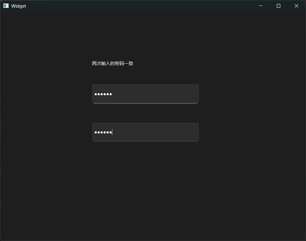 执行程序,观察效果。可以看到当两个输入框内的密码相同时,就会提示密码相同。