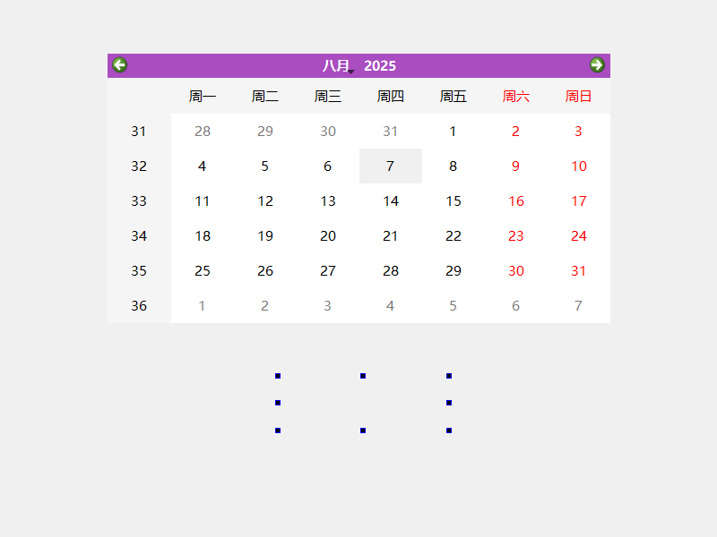 | verticalHeaderFormat | 日历第一列显示的内容格式 |