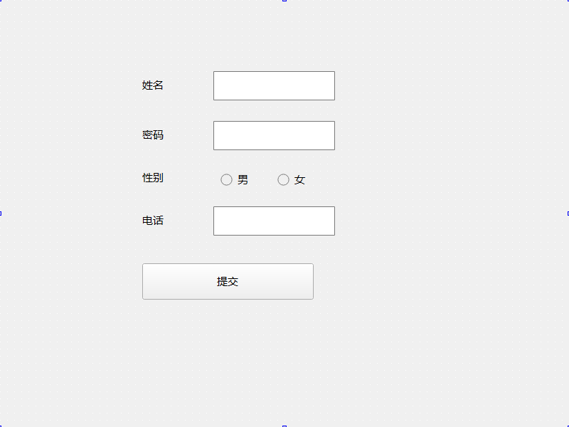 在界面上创建(4个label)三个输入框和两个单选按钮,一个普通按钮: