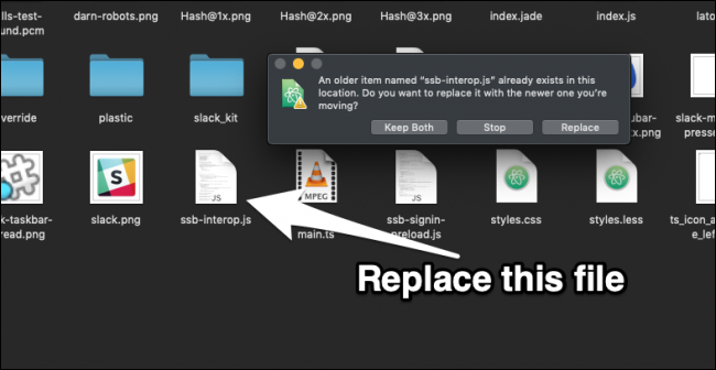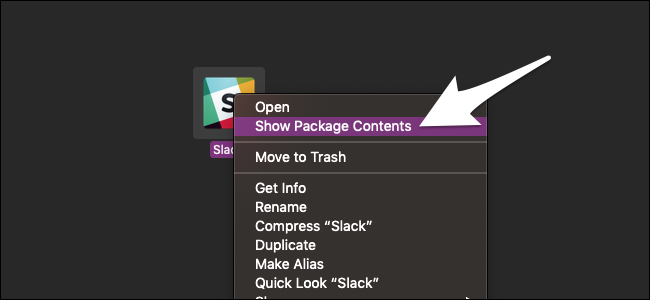 这部分,每次Slack更新时,您都必须再次执行。 在macOS上,您可以通过右键单击应用程序本身并选择“显示软件包内容”来进入Slack的源目录。 在Windows上,您可以在~\AppData\Local\slack\找到它。