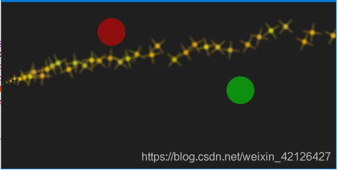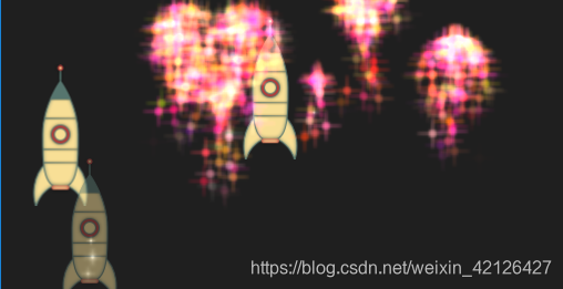 在本章开始时,我们已经介绍过粒子组了,默认下,粒子都属于空组("") 。使用GroupGoal控制器可以改变粒子组。为了实现可视化,我们创建了一个烟花示例,火箭进入,在空中爆炸形成壮观的烟火。