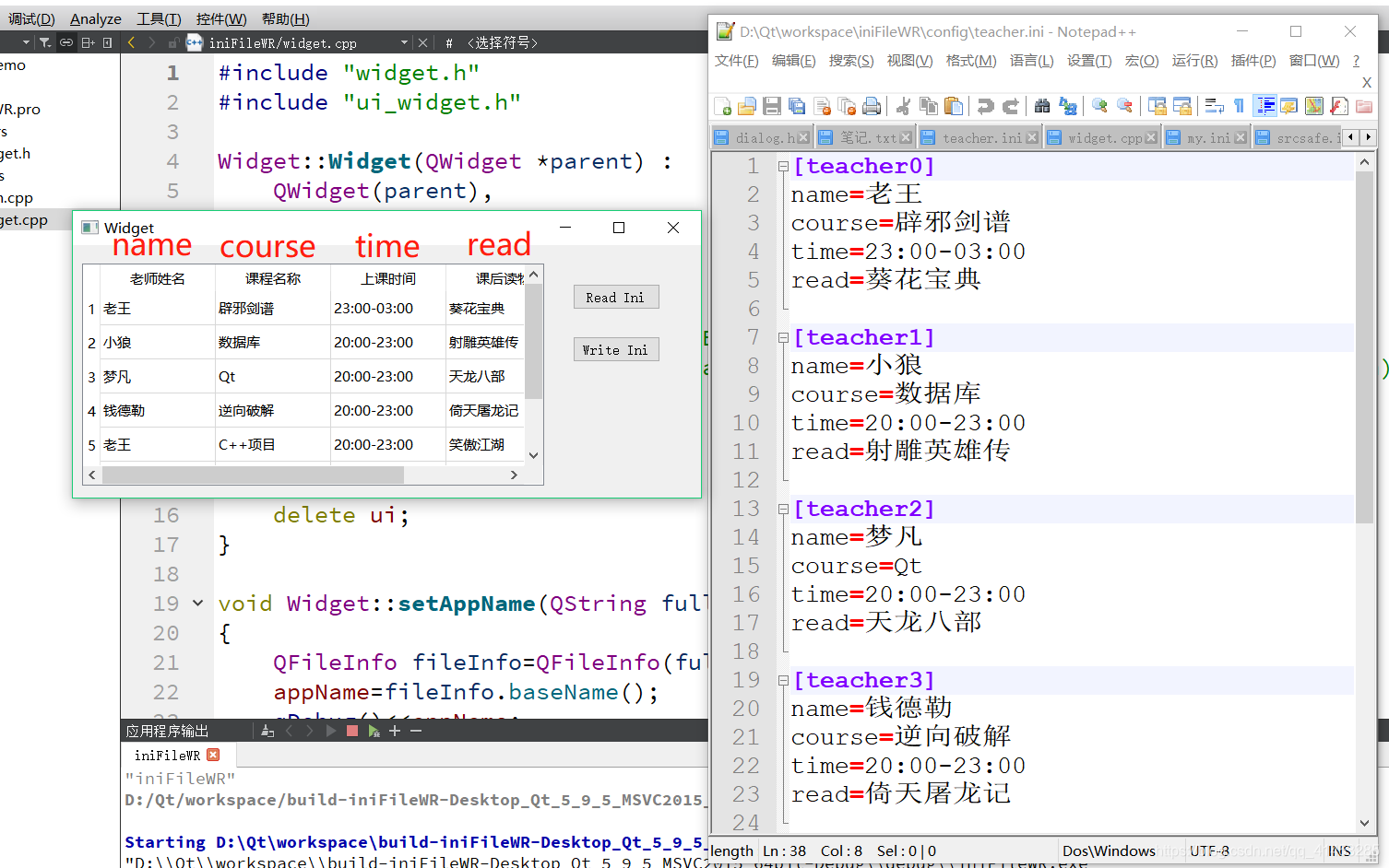 - 下面演示一个Tab Widget控件对ini文件的读取与写入
