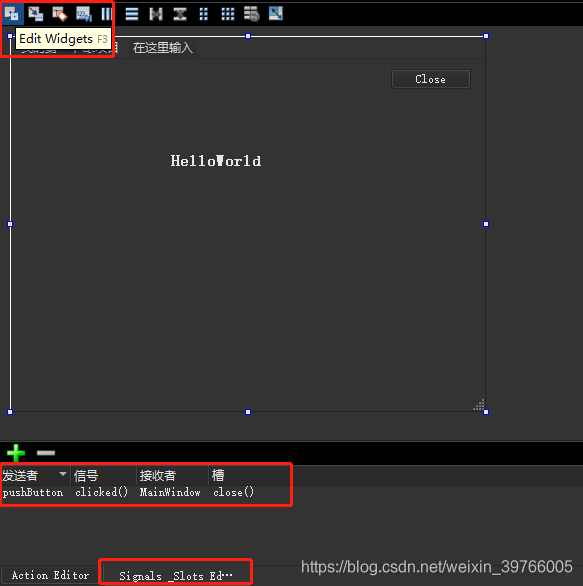 a.在 UI 设计器里,单击上方工具栏里的“Edit Widgets”按钮: