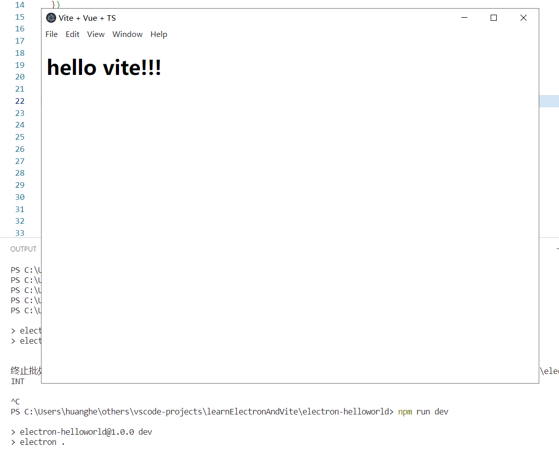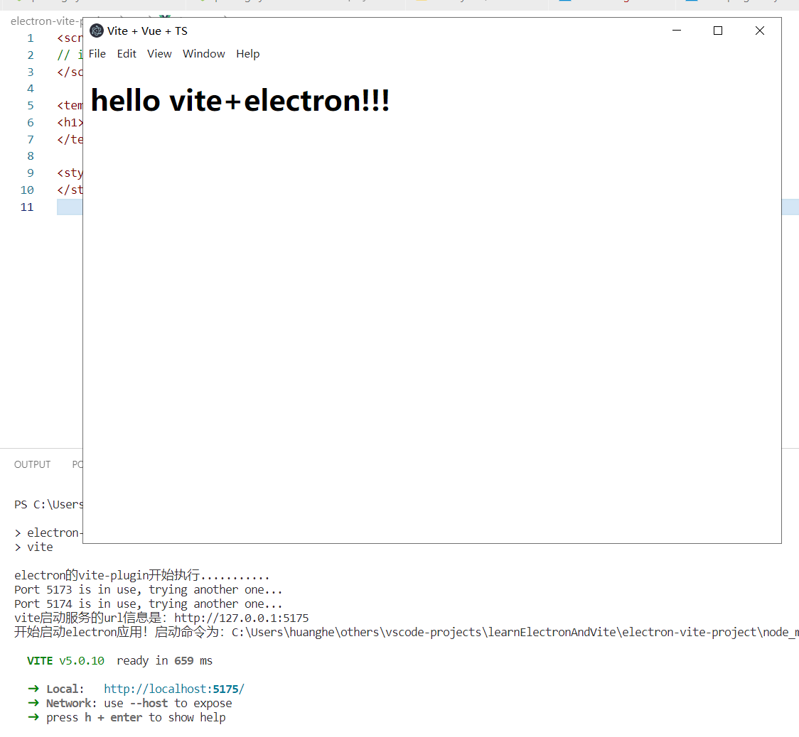 看到结果,惊喜万分!!我们已经初步实现了通过vite的方式开发electron应用!!!并且当我们改变前端内容时,也是支持热加载的。