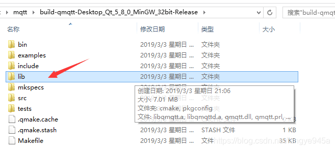 3、构建完毕,即可在工程目录下看到生成的lib文件夹,我们所需要的qmqtt库就在里面。