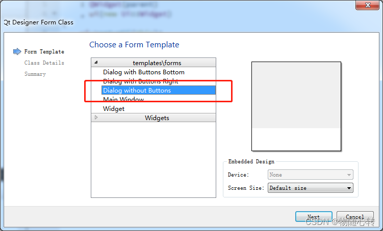 后,向项目中添加新文件,模板选择Qt分类中的“Qt设计师界面类”,界面模板选择Di-
