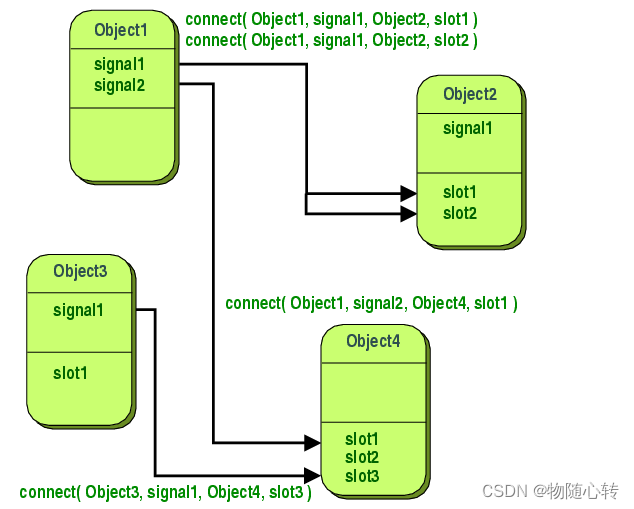 信号发送者不需要知道发出的信号被哪个对象的槽函数接收,槽函数也不需要知道哪些信号关联了自己,Qt的信号槽机制保证了信号与槽函数的调用。支持信号槽机制的类或者父类必须继承于QObject。