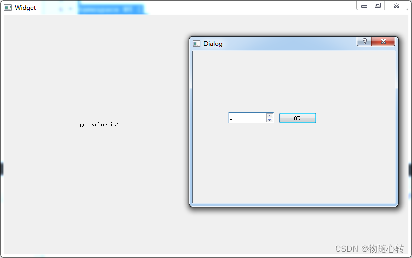 下面打开widget..ui文件,向界面上拖入一个Label部件,更改其文本为“get value is:”。然后进入widget..cpp文件添加头文件#include“mydialog.h”,
