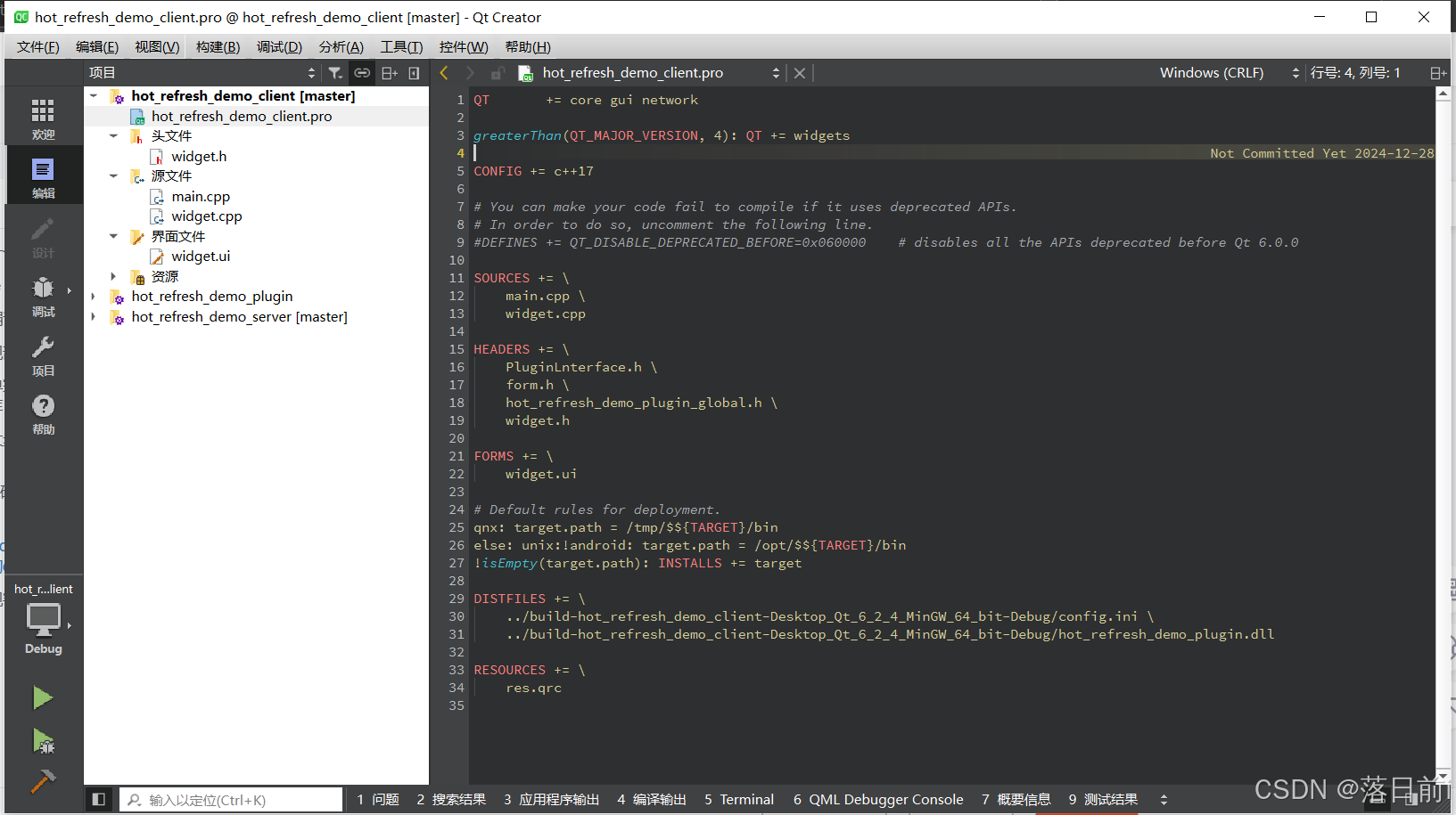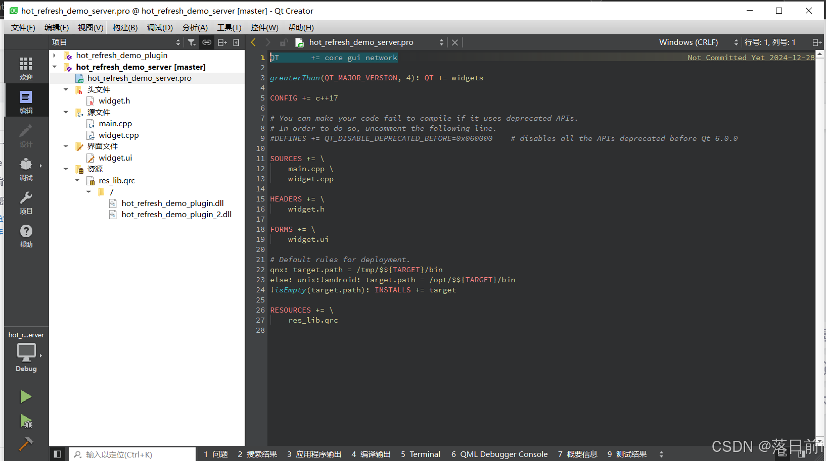 查看hot_refresh_demo_plugin_global.h文件,可以看到,此大概是Qt自动生成的用于控制动态链接库(DLL)导出和导入符号的宏定义,使用时在函数、类前添加HOT_REFRESH_DEMO_PLUGIN_EXPORT 宏即可