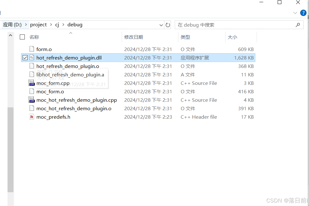 那么在外面的构造目录(由于我设置了构造路径)下的debug文件夹中(如果你使用的是debug便在debug中、release便在release中)有hot_refresh_demo_plugin.dll文件。记住一个文件,让我进行下一步。