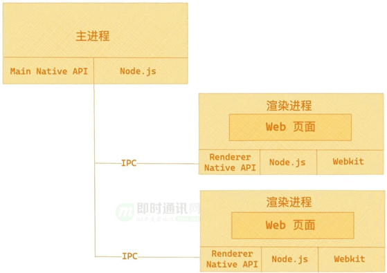 Electron 继承了来自 Chromium 的多进程架构,这使得此框架在架构上非常相似于一个现代的网页浏览器。