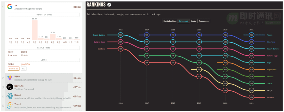 Tauri 在 JavaScript 明星项目和 stateofjs 中的排名: