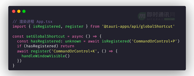 在 Tauri 中,得益于 JS API 的便利性,在渲染进程中就可以注册,因此只需要在 React 生命周期中执行注册。