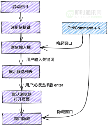 其输入框部分均由 React 实现,主要的差异在窗体根据内容高度动态调整窗体的高度,根据 document.body.offsetHeight 的高度设置 mainWindow 的高度;在 Electron 中,可以在渲染进程中发 IPC 通知主进程去修改,主进程监听到消息后进行高度修改。