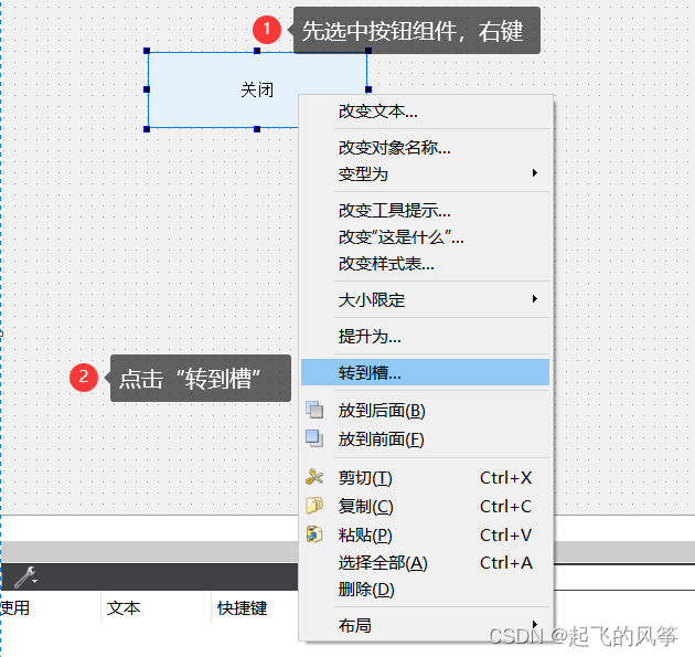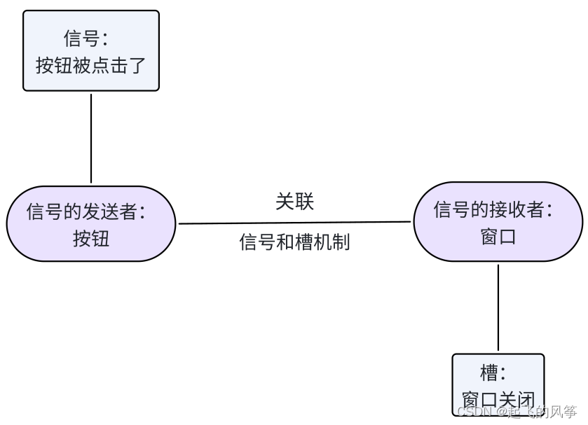 1)信号和槽机制在底层通过函数间的相互调用来实现。每个信号可以用函数表示,称为信号函数;每个槽也可以用函数表示,称为槽函数。例如,"按钮被按下"这个信号可以用clicked()函数表示,而"窗口关闭"这个槽可以用close()函数表示。因此,使用信号和槽机制实现"点击按钮会关闭窗口"的功能实质上是clicked()函数调用close()函数的效果。