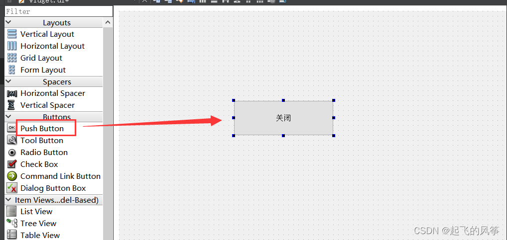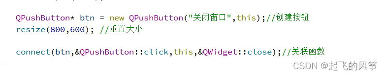 代码示例:在窗⼝中设置⼀个按钮,当点击"按钮"时关闭"窗⼝".