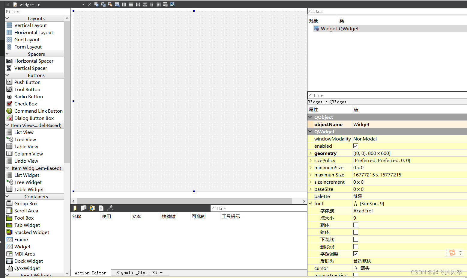 2、双击widget.ui⽂件,进⼊UI设计界⾯;