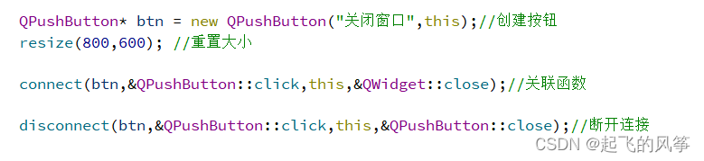 - 需要注意的是,断开连接时,必须提供与建立连接时相同的参数,包括信号函数和槽函数的指针或函数指针。