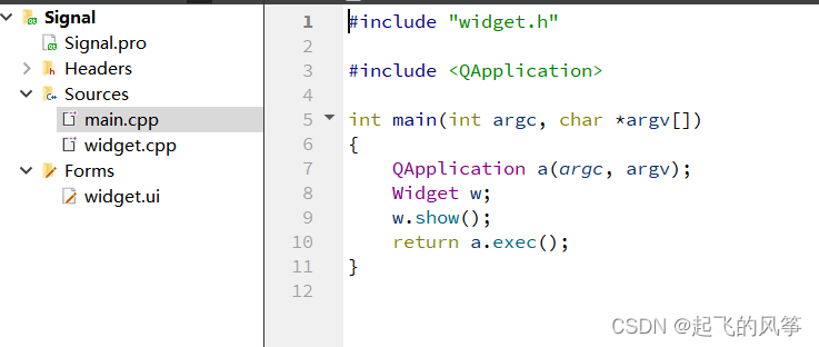 (2)在"widget.cpp"⽂件中实现槽函数以及连接信号和槽;