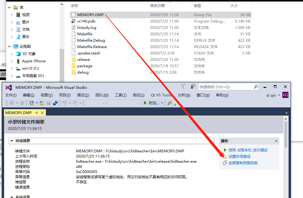 Qt 利用 dmp 文件进行调试