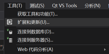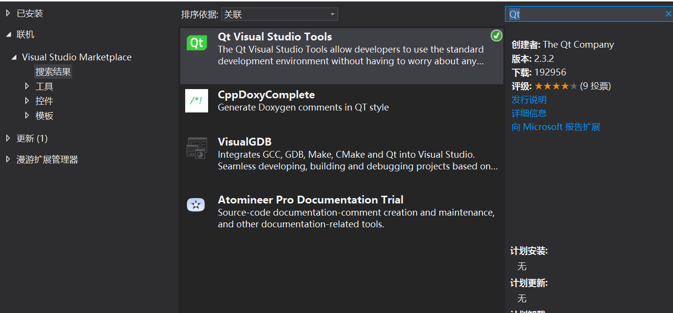 在VS中找到工具->扩展和更新->联机,搜索Qt然后安装它的一个辅助工具。