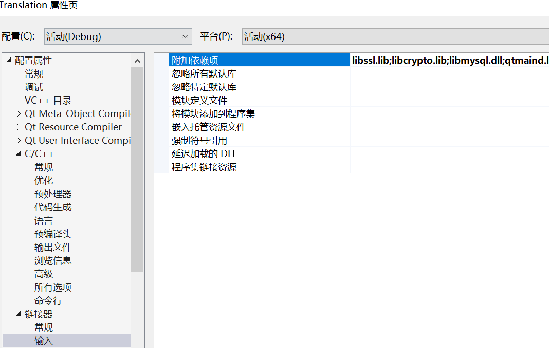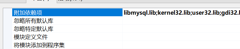 还需要在链接器->输入->附加依赖项中加入libmysql.lib,不过这句话跟代码里的#pragma comment(lib, "libmysql.lib")是一样的。