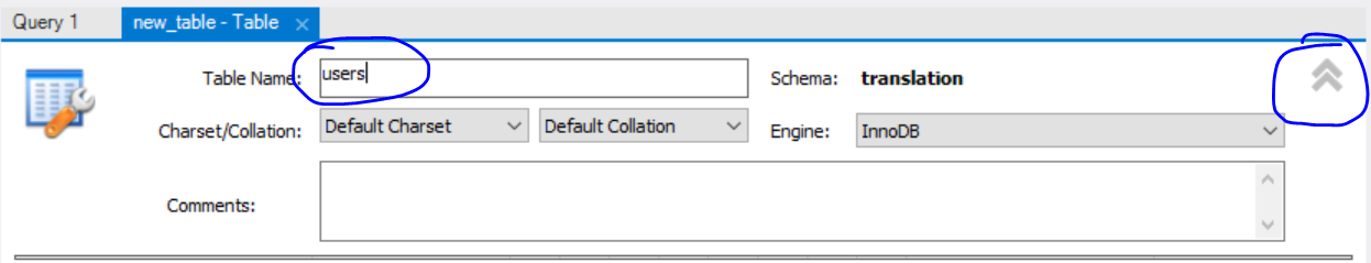 后面肯定是需要建很多张表的,作为测试我们先来新建一张记录用户的表,随便起个名字之后点右边的奇怪箭头就可以开始设计这张表的结构了。